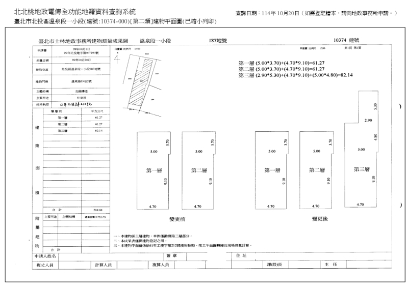 - 另10374建號之1樓、2樓、3樓及3樓頂層增建部份(即本件拍賣標的,已經地政事務所編列臨時12716建號,座落地號為溫泉段一小段187地號,1樓、2樓、3樓及3樓頂層增建部分面積約分別為50.42平方公尺、52.26平方公尺、35.39平方公尺、42.21平方公尺,權利範圍為全部)。12716建號係未辦保存登記之建物增建部份,拍定後無法以權利移轉證書辦理建物登記(另請注意,此部分如經主管機關認定為違建,則有遭拆除風險,此部分請應買人慎重列入評估),且本件拍賣物以建物現況拍賣,當事人及拍定人均不得以面積不符,請求增減價金。