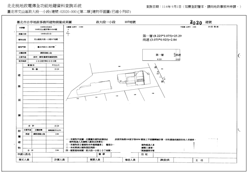 - 本件拍賣標的2020建號(政大二街45號)與政大二街47號、49號打通使用,為進門左手邊木板墊高位置,上有沙發座位及餐桌,地政稱並無增建,債務人之法代劉O珍出租予第三人劉O強使用,租期自111年9月1日至116年8月31日止,每月租金5,000元,以租金扣抵對劉O強之債務,拍定後不點交。土地使用分區為第二種住宅區。